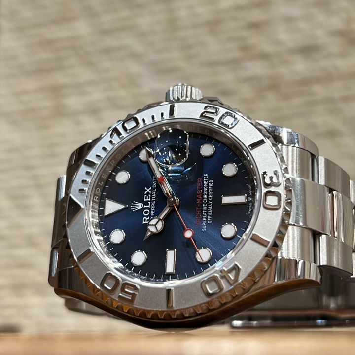 ・海を連想させる鮮やかなブルーダイヤルが特徴的で、深みや透明感を感じさせるデザイン。