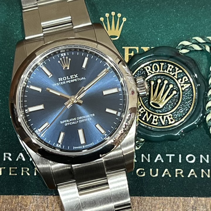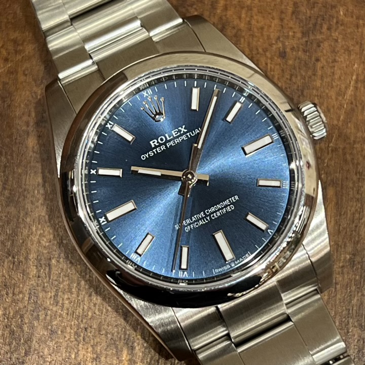 ・主張しすぎない鮮やかなブルーダイヤルが特徴で、程良いアクセントにピッタリな1本でございます。