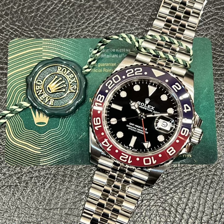 ・特徴的な赤青ベゼルはモデルを象徴するカラーリングとなり抜群の人気を誇ります。