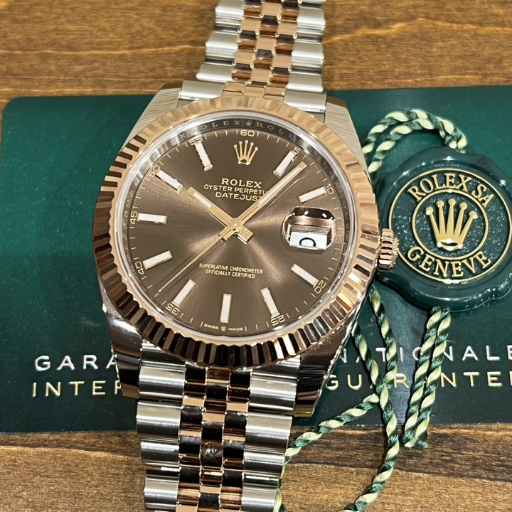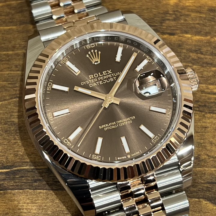 ・エバーローズゴールド×チョコレートダイヤルは、カラーリングの相性も抜群な高い人気を誇る組み合わせ。