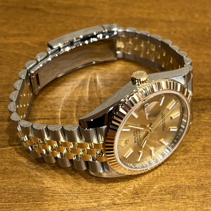・デイトジャストのコンビモデルでは王道ともいえる、18KYG+シャンパンダイヤルの組み合わせ。