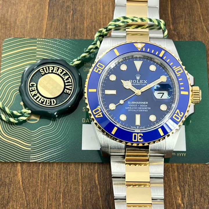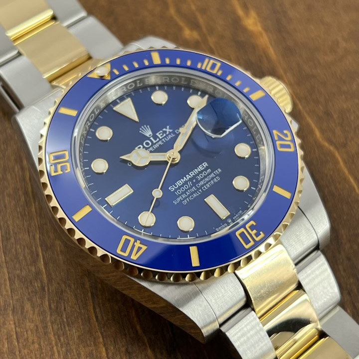 ・ゴールドを使用しておりますが、ブルーのダイヤル・ベゼルの組み合わせが爽やかな印象を与えてくれます。