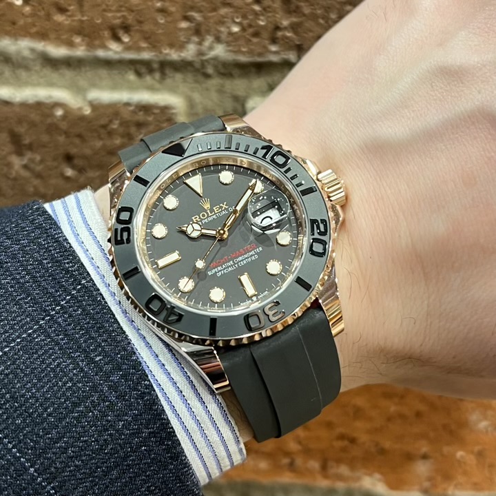 ・エバーローズゴールド×ラバーベルト仕様となり、ラグジュアリーでありつつもスポーティな印象となります。