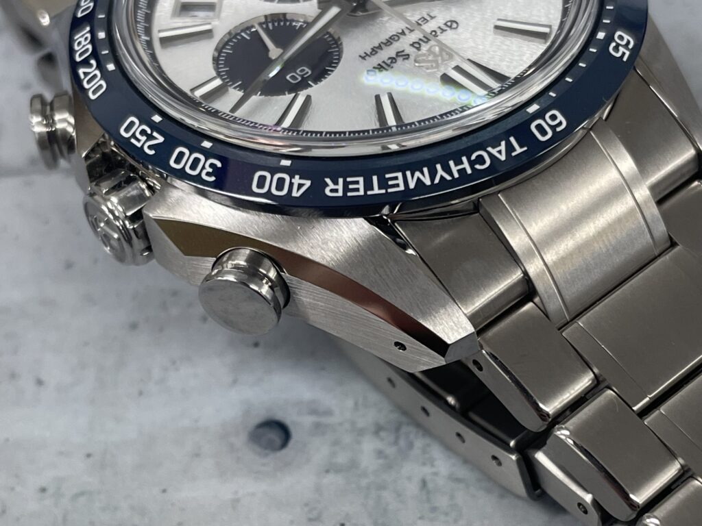 10振動のメカニカルクロノグラフとして世界最長となる、最大巻上時約72時間を両立した「キャリバー9SC5」を搭載し、「審美性」「視認性」「装着性」という3つの要素を高い次元で融合させることを目指した「エボリューション9スタイル」等、Grando Seikoのこだわりを突き詰めた1本となっております。目立つ傷も無く、コンディションも良好です。ご興味をお持ちの方はお気軽にお問い合わせくださいませ。