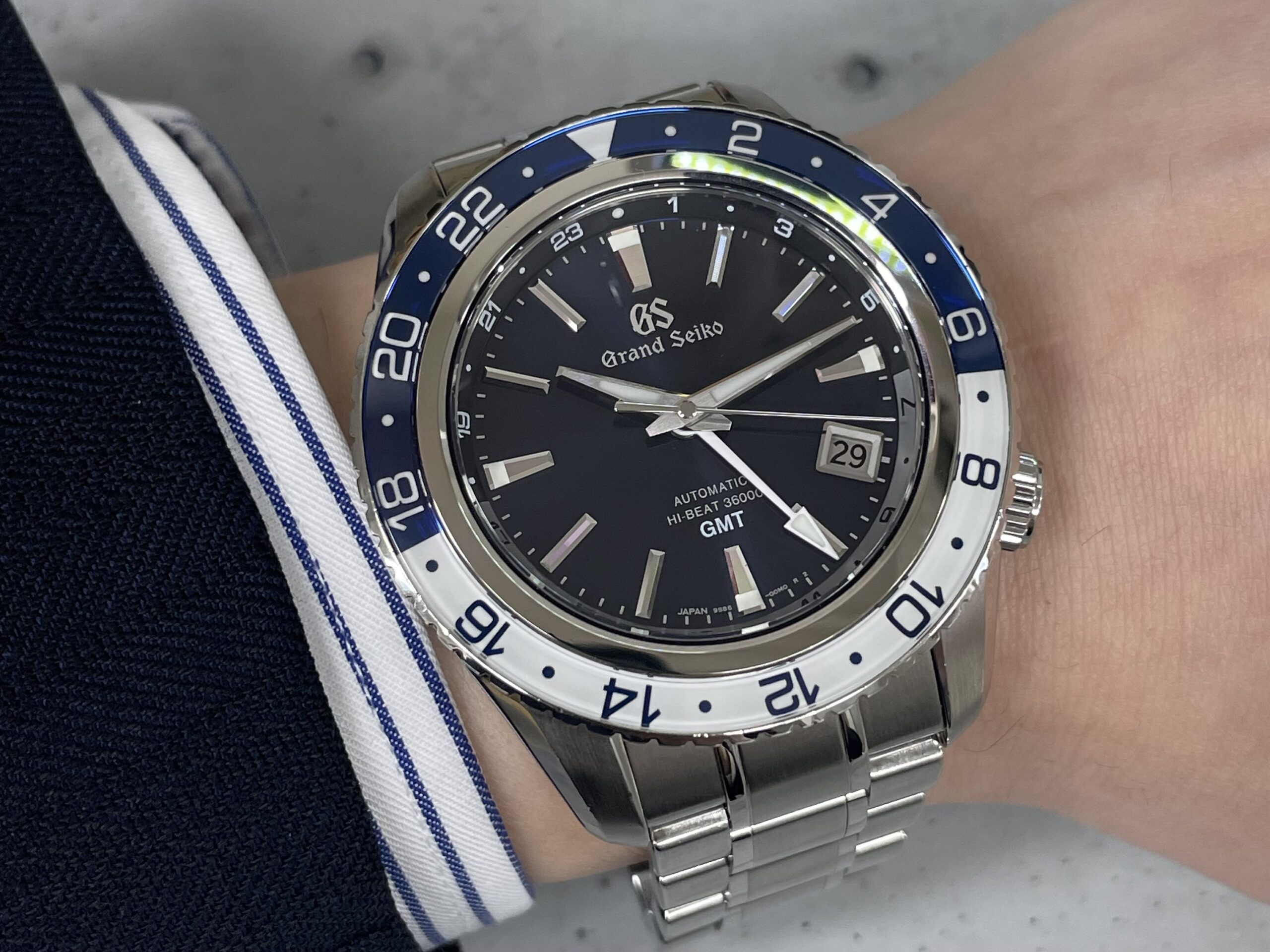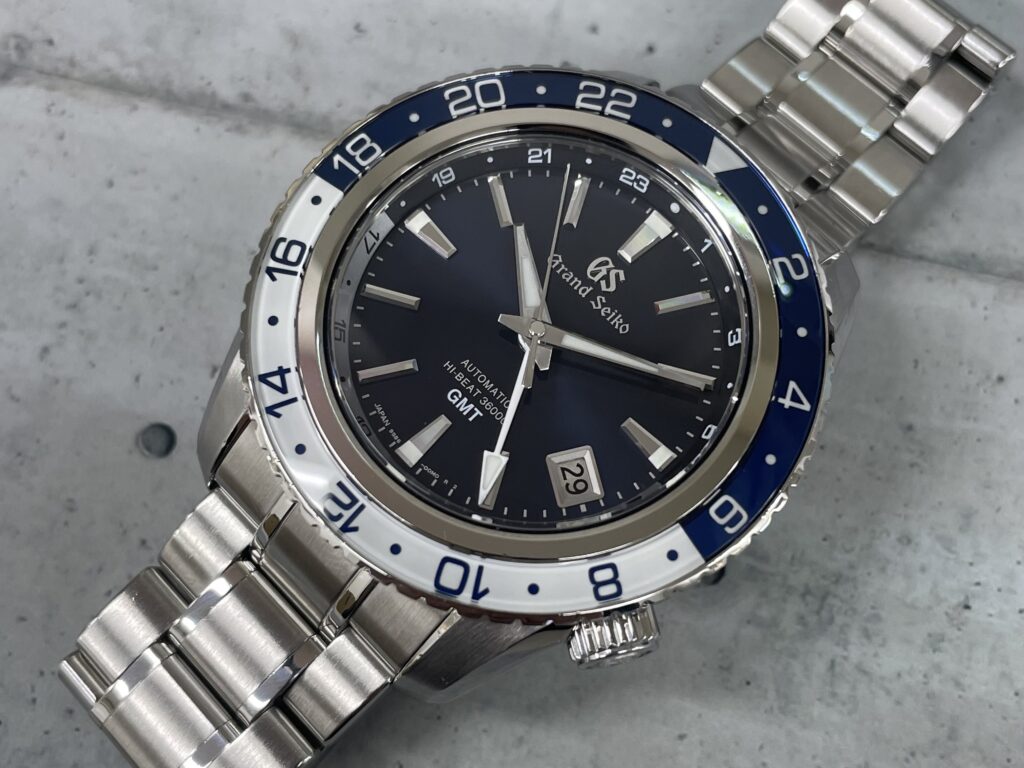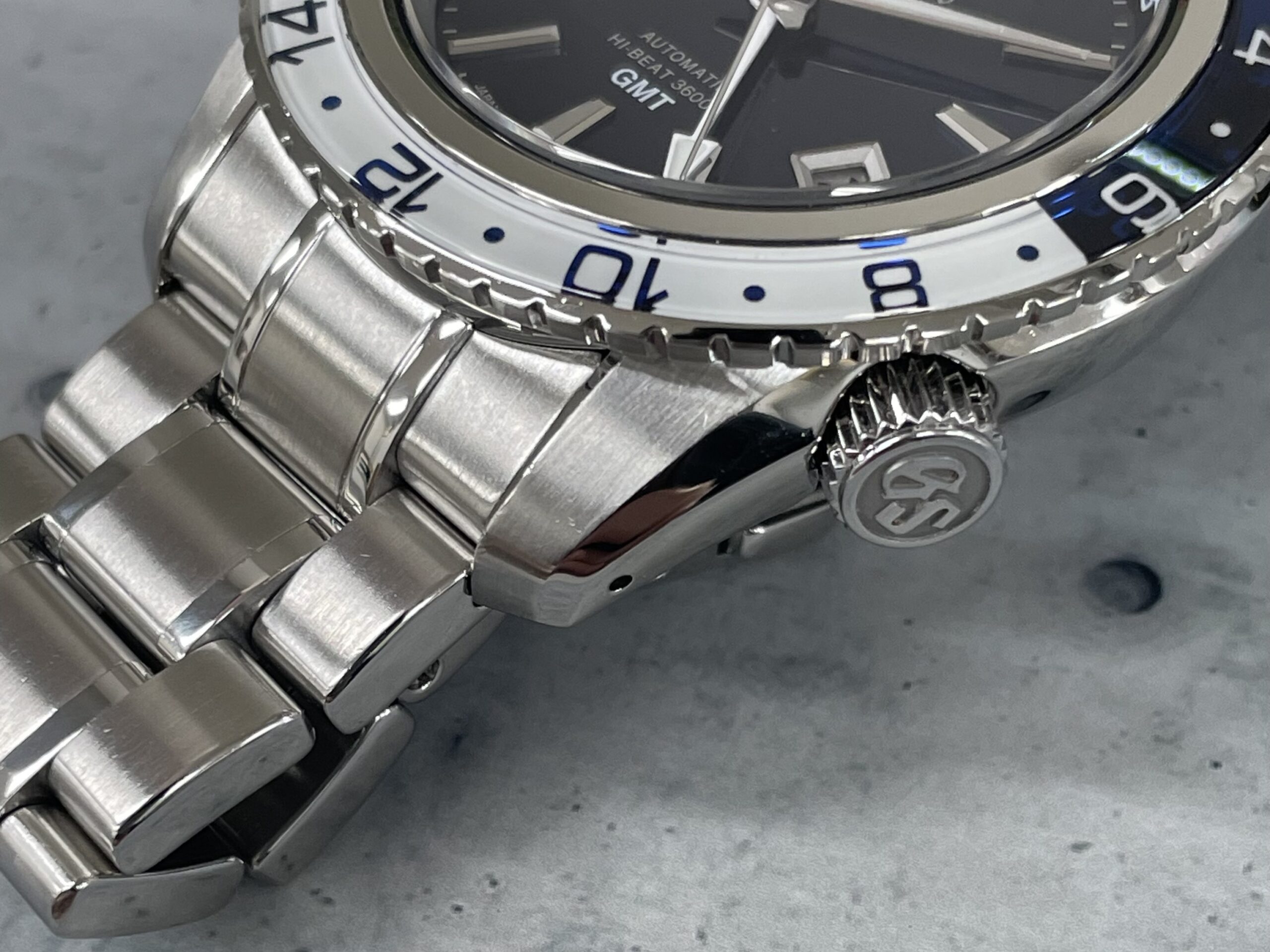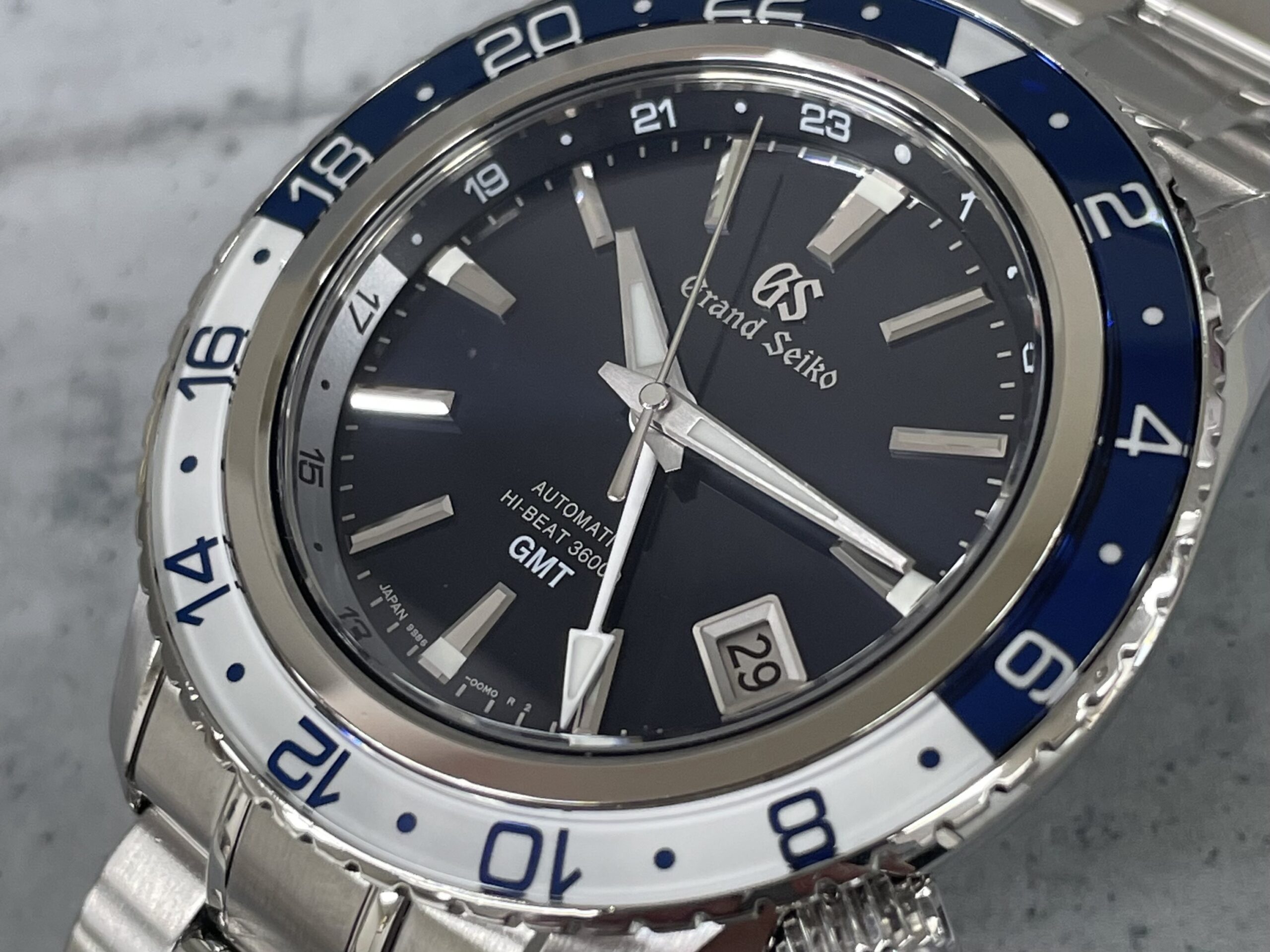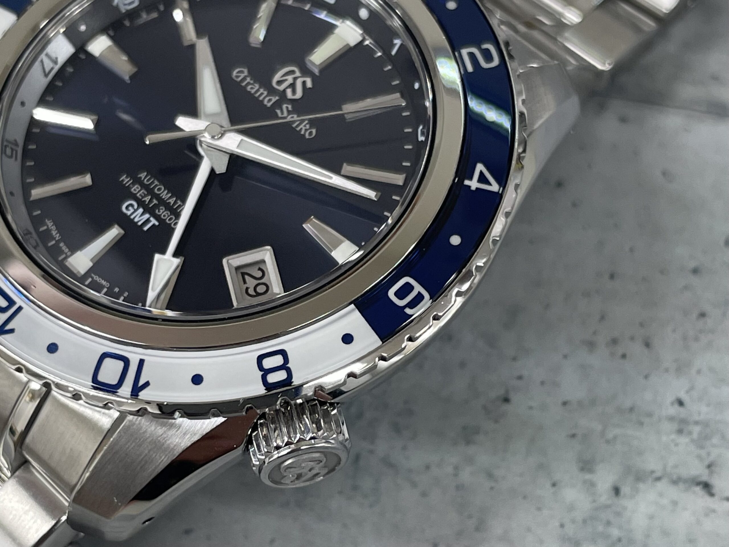 今回はそんなグランドセイコー スポーツコレクションの中でも、44.2mmのケースを持ち、青と白のサファイアガラスベゼルが特徴的なGMTモデル【SBGJ237】をご紹介いたします。 |