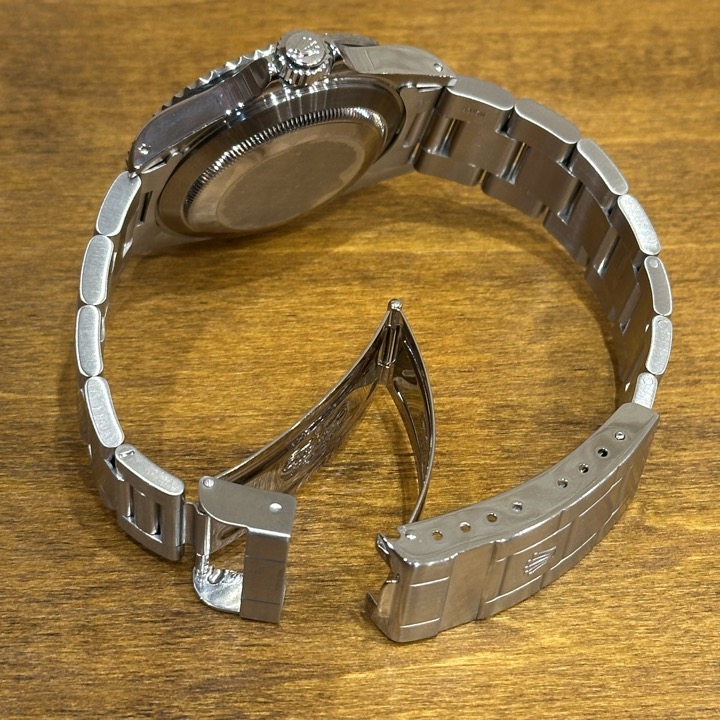 ・ノンクロノメーター仕様のため、文字盤上6時側のモデル表記がスッキリとしたツーライン仕様となっている一本。